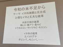 「令和の米騒動」(お米出回り始めましたが値段は相変わらずですね)から米と雑穀(ヒエ・アワなど)の光合成の違いのお話も。水田の雑草、ヒエやアワと米の違いですが米はC3植物、雑穀はC4植物です。 |