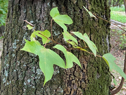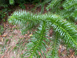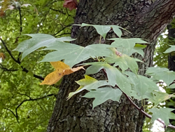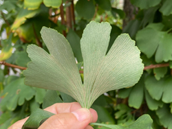 緑化植物園の手前のイチョウの木です。イチョウの葉にはこんな風に切れ込みが入っているものがあります。イチョウはジュラ紀から存在し、見つかった葉の化石には今よりも、もっとたくさん切れ込みが 入っているそうです。それがだんだん切れ込みが少なくなってきたけれど、時折木の生え始め等に古い性質のものが出ることがあるそうです。 |
