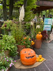 さて都市緑化植物園に着きました。服部緑地公園の一部ですが、ここは入場 料が必要です。温室、ハーブ園やツバキ園もあり、花と緑にあふれる場所です。入り口にハロウィンの飾りが! |