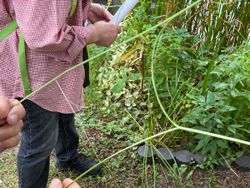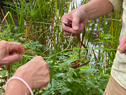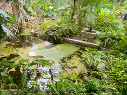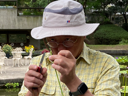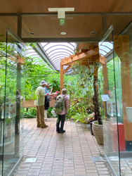 | 黒松(雄松)と赤松(雌松)と門松の話や松の種類と葉の出方、ソメイヨシノの由来やサクラの葉の違い、ツユクサの変種のオオボウシバナは友禅の下絵を描くのに使われていた、などなど。植物に関するお話をたくさんして頂きました。 服部緑地緑化植物園では外の散策では見かけない植物も見られて、とても面白い所でした。 |