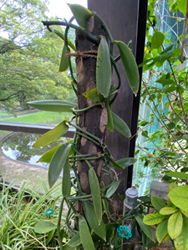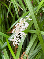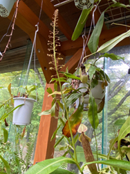 ところで、温室内で先生がおもむろにスマホを取り出して…ちょっと見えにくいですが、パイナップルの花です。 先生はいつもパイナップルを丸ごと買うので、食べた後で上の部分を土に植えて置いたら、成長してきたそうです。そして葉の真ん中が赤くなってきたと思ったら何とつぼみが!食べられる程にはならなかったそうですが、丸ごとパイナップルを買ったらぜひ試してみてください。 |