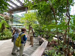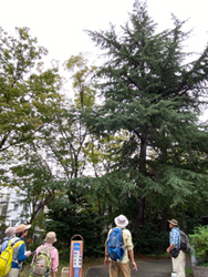 今月は「都市部公園の魅力」と題して服部緑地を訪れ、ブナ科の常緑樹・落葉樹、ニレ科の木などを観察する予定でしたが、飯島先生の「都市緑化植物園もいいですよ」の一言で急遽予定変更です。