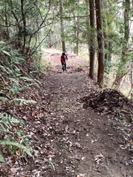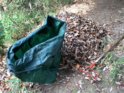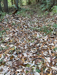 | 今日はいつも使わせて頂いている里山の道の落ち葉掃きです。最初はこんな感じ、頑張って集めましたよ。 | |